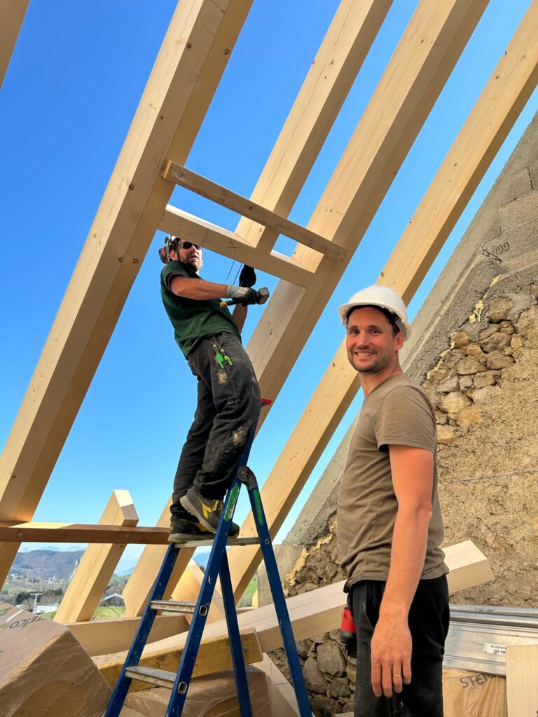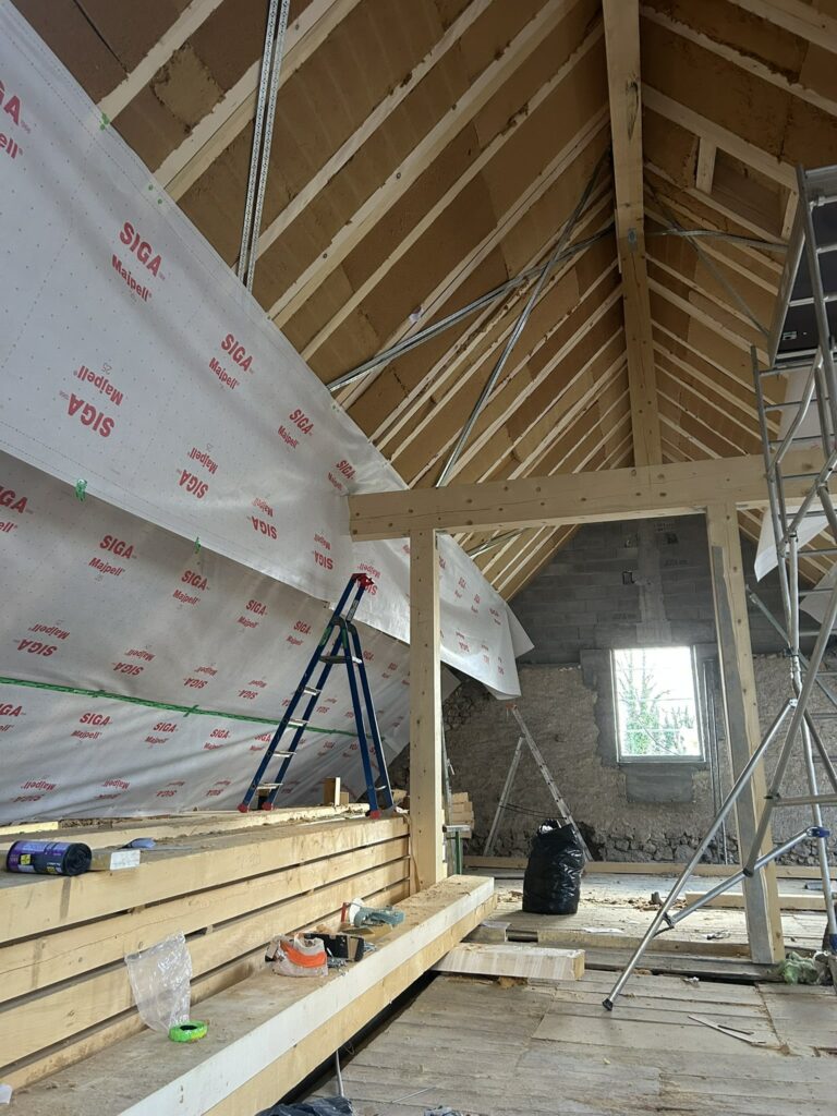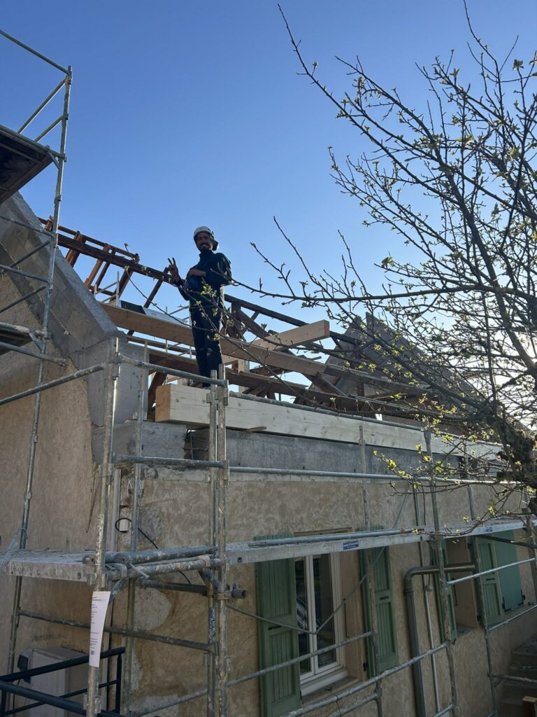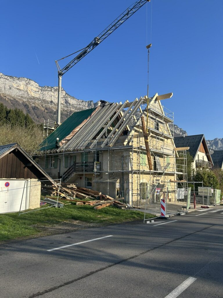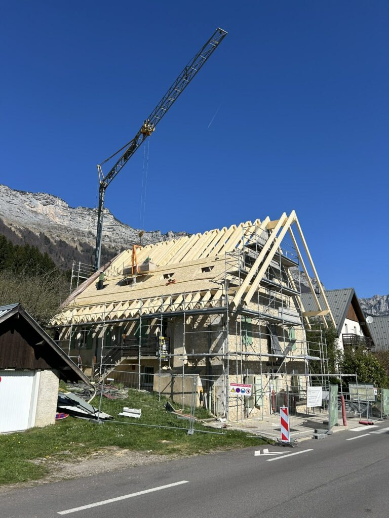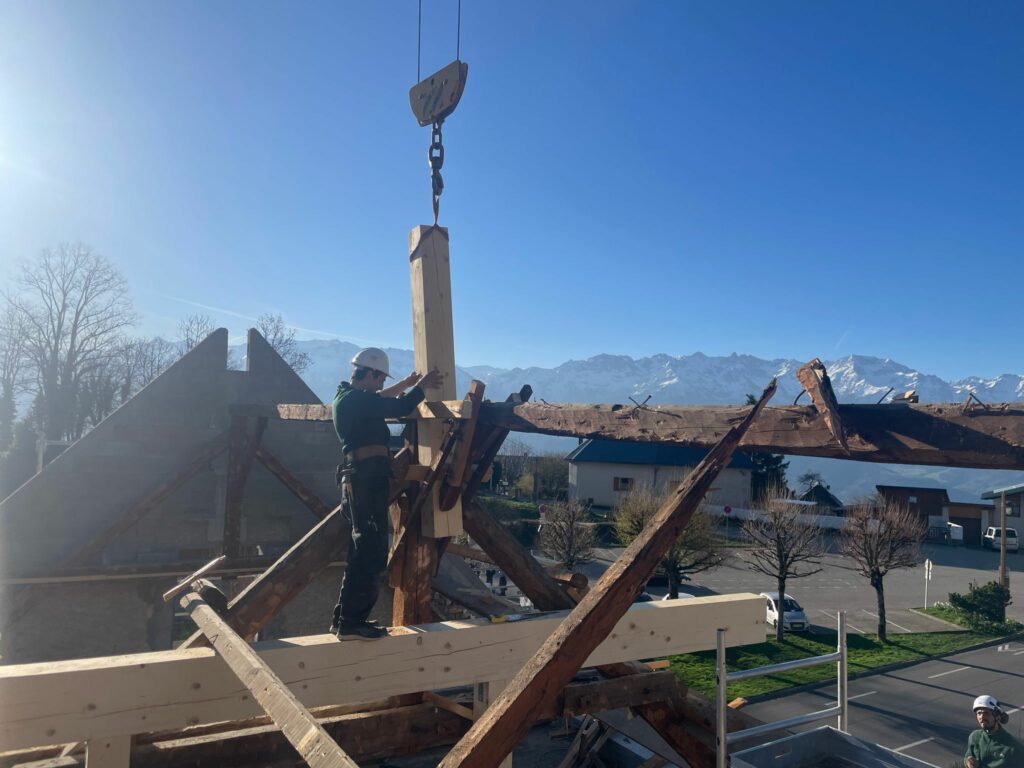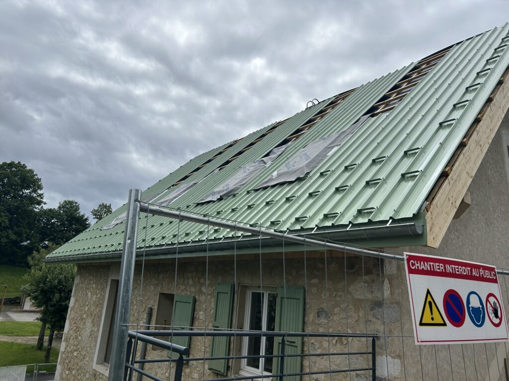 Dépose de l’ancienne toiture, puis création d’une nouvelle charpente, isolation et couverture du toit de la Mairie du Plateau-Des-Petites-Roches.
